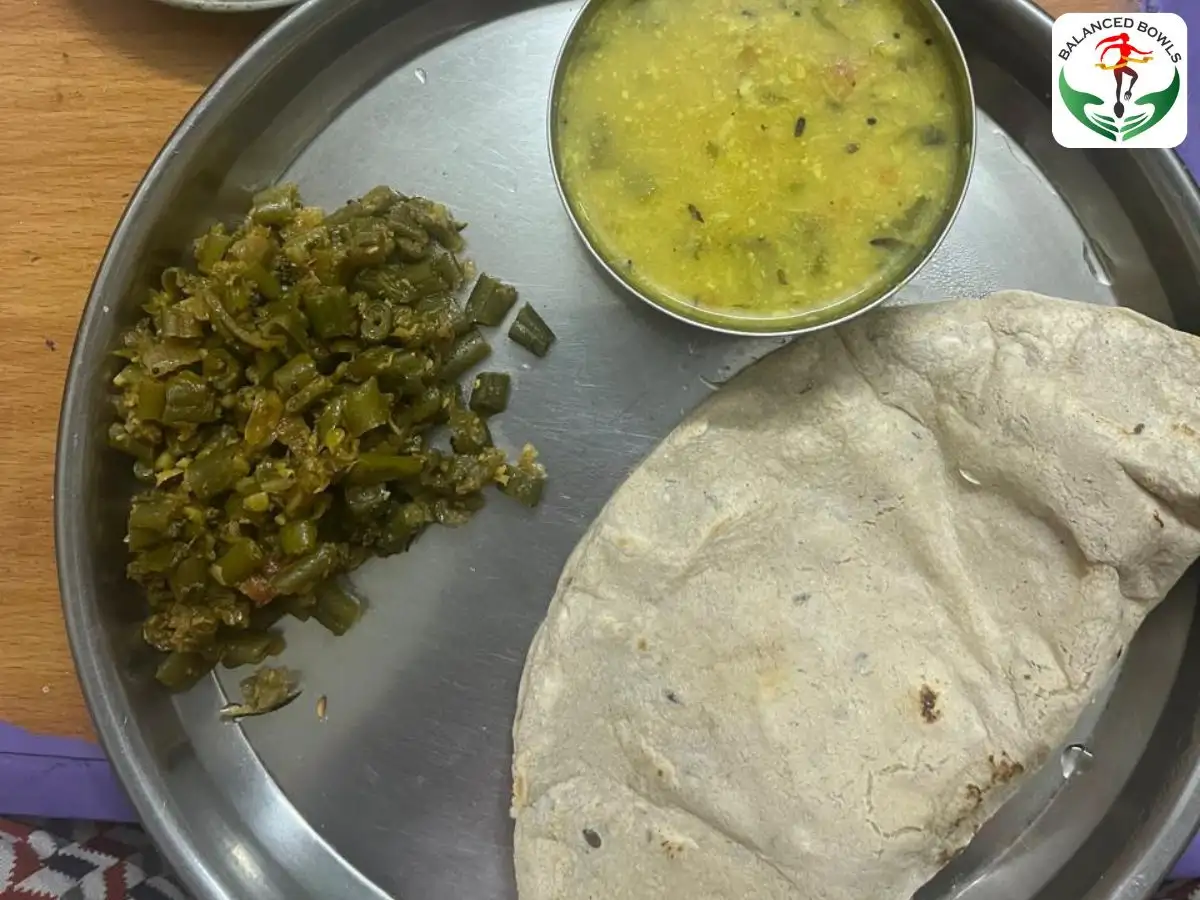 The fatty liver diet plan meal plate is a combination of lean protein (Dal) and complex carbs. This ensures a slow, sustained release of energy and helps in addressing afternoon hunger pangs.