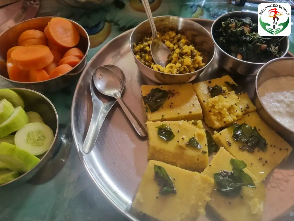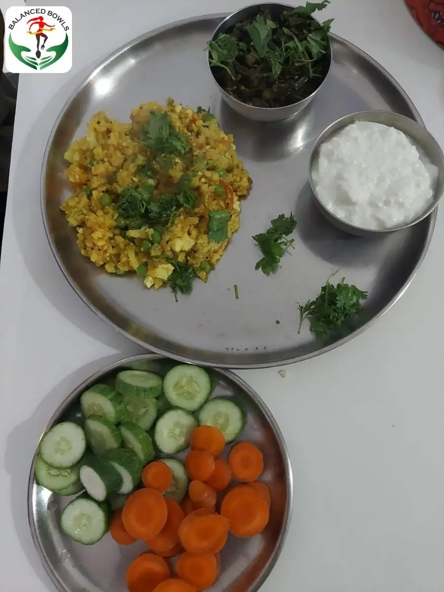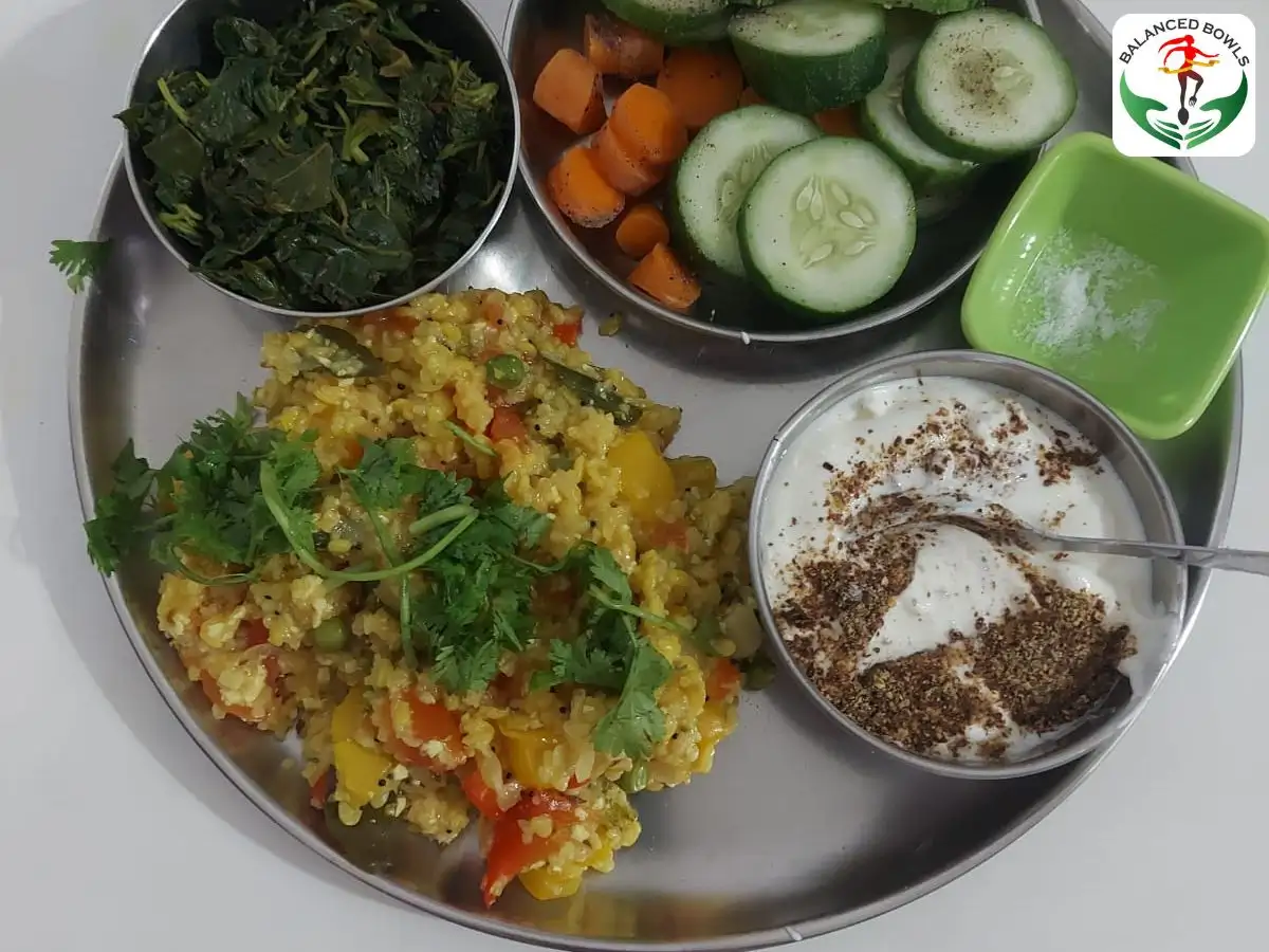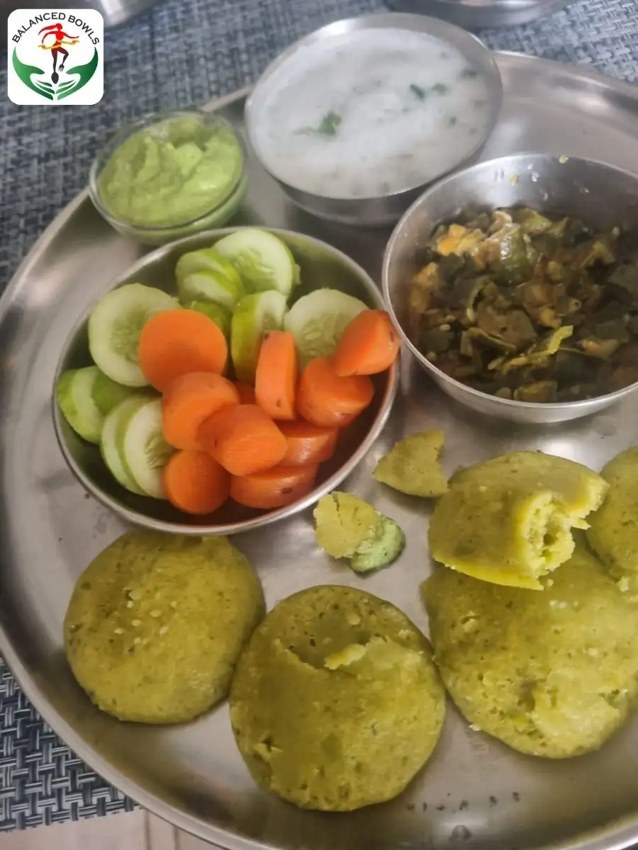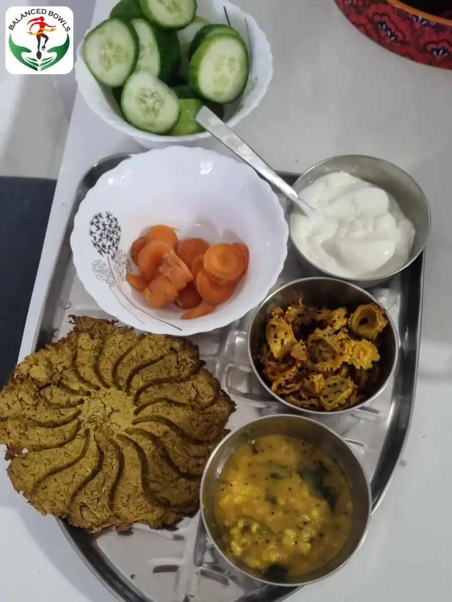 • Salad + Jowar Thalipeeth + Dal + Greek yogurt + karela Sabji